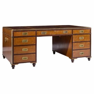 Baker Furniture Campaign Style Leather Top Partners Desk