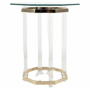 Charles Hollis Jones Lucite, Brass and Glass Side Table