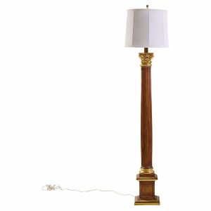 Thomas Morgan Carved Wood Classical Motif Reeded Column and Gilded Wood Floor Lamp