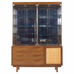 Lawrence Peabody for Nemschoff Walnut and Cane Credenza and Hutch