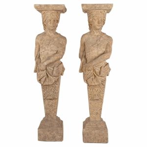 Maitland Smith Stone Goddess Bust Pedestal Plant Stands – Pair
