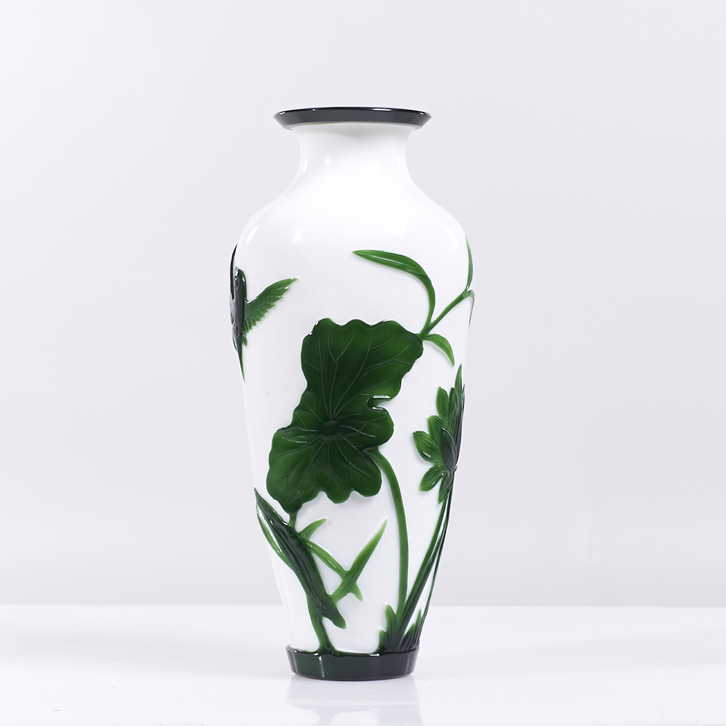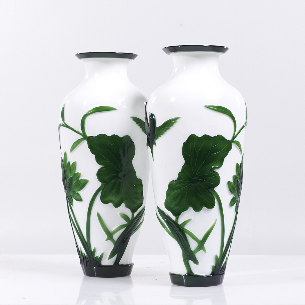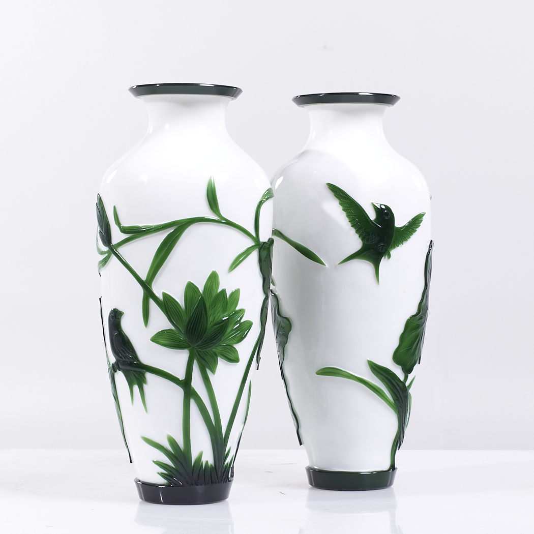 Antique Chinese Green and White Peking Glass Vase – Pair