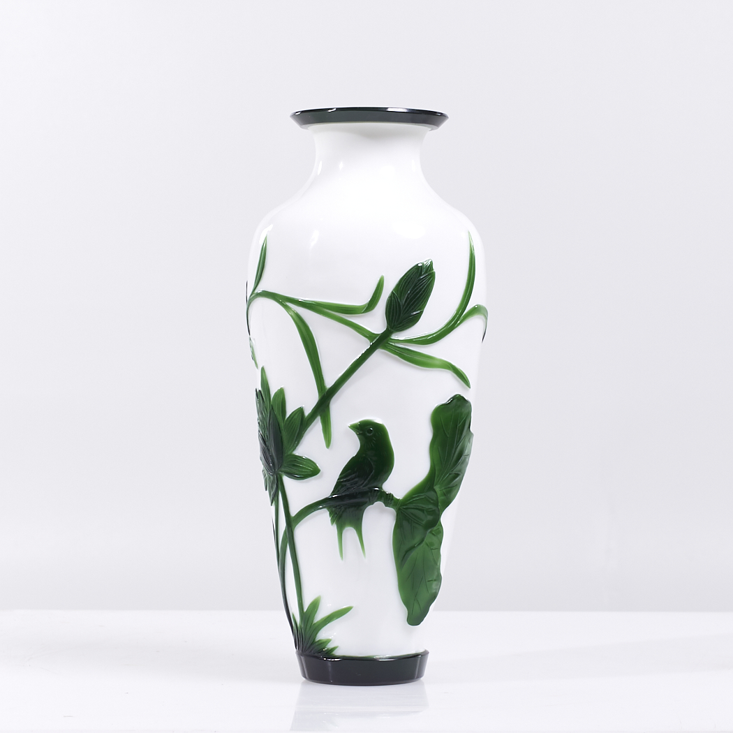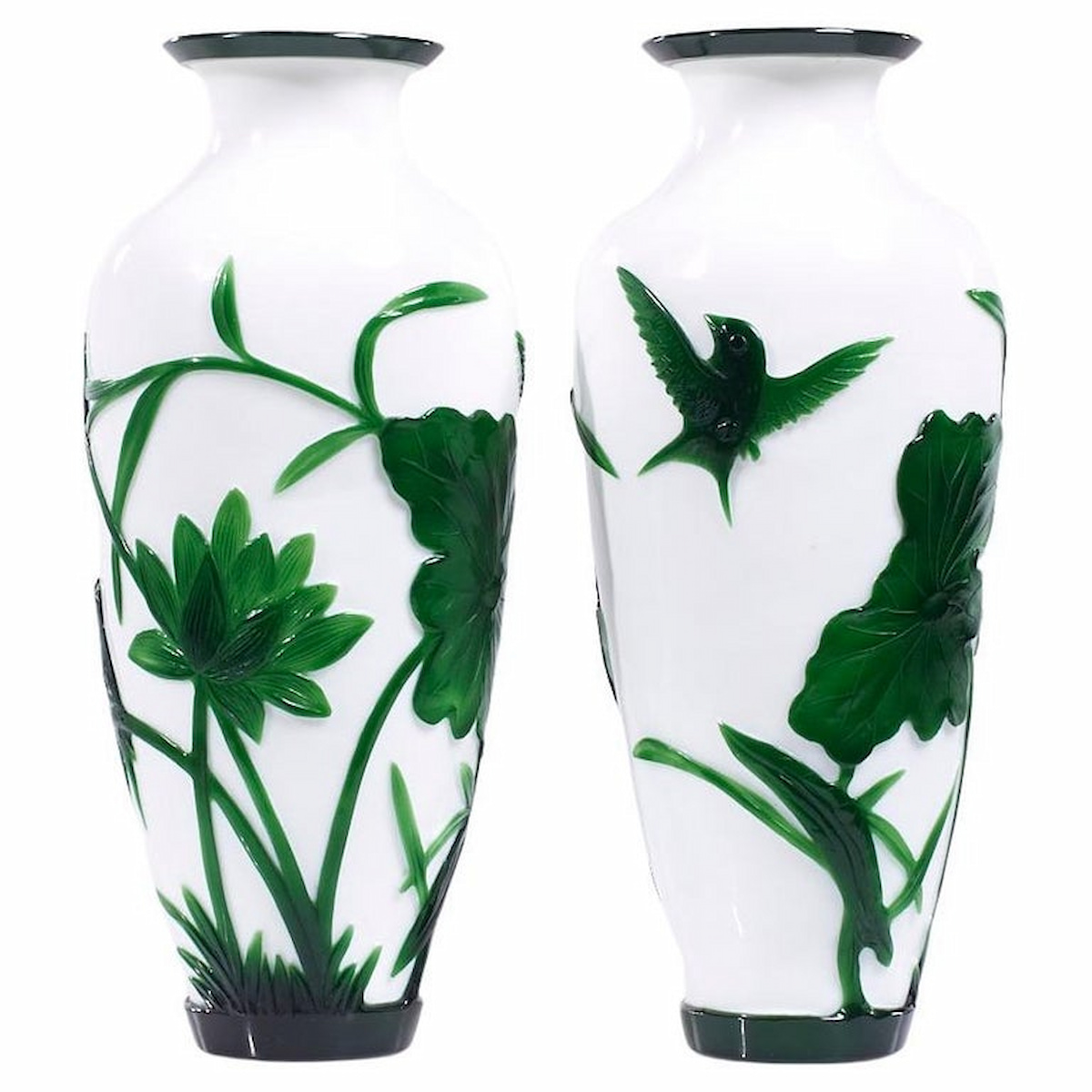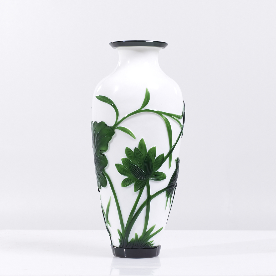 Antique Chinese Green and White Peking Glass Vase – Pair