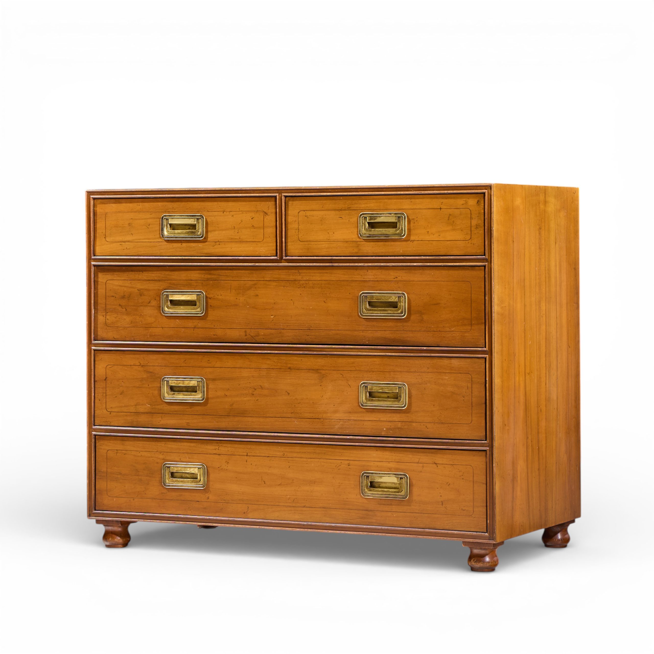 Baker Cherry and Brass Campaign 5 Drawer Dresser