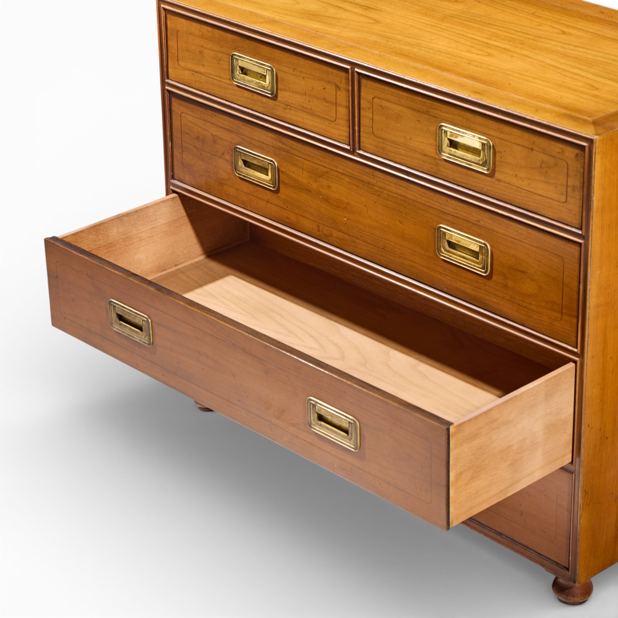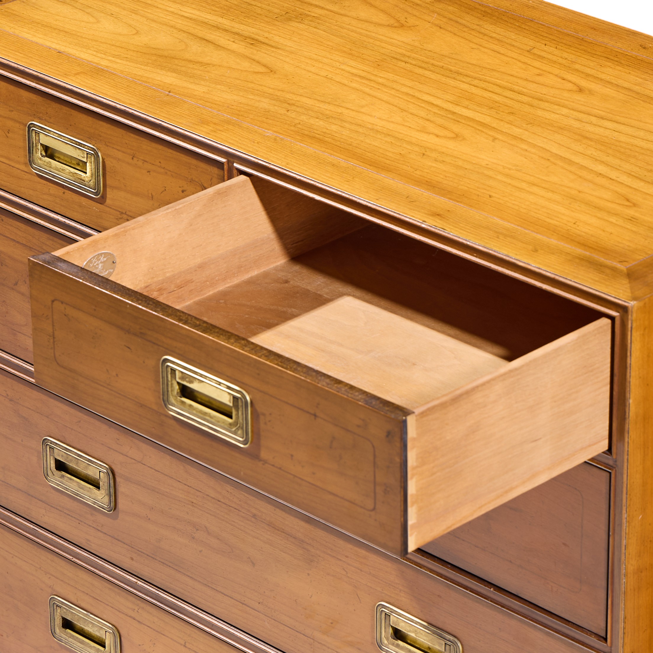 Ask A Question About the Baker Cherry and Brass Campaign 5 Drawer Dresser