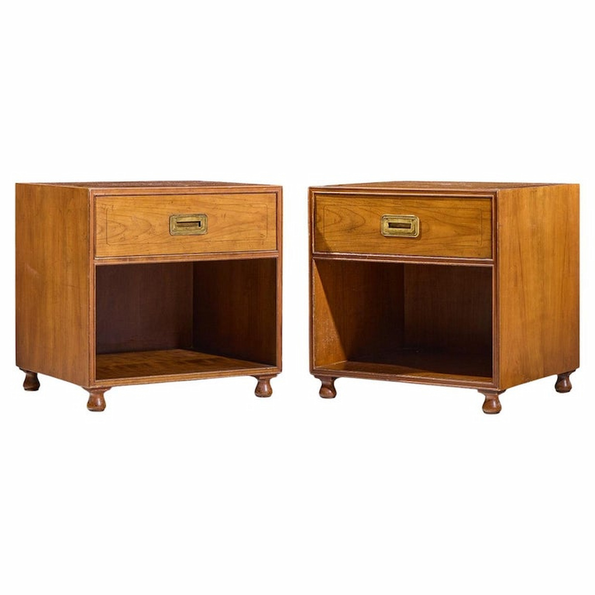 Baker Cherry and Brass Campaign Nightstands – Pair