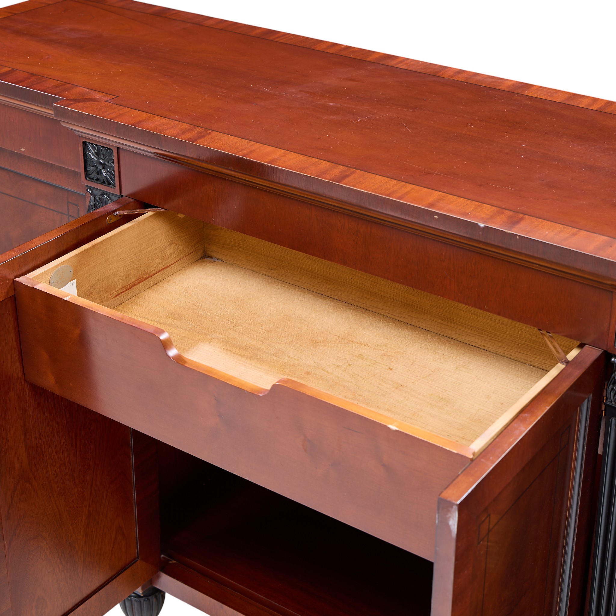 Baker French Empire Neoclassical Mahogany Sideboard Buffet Server Bar Credenza