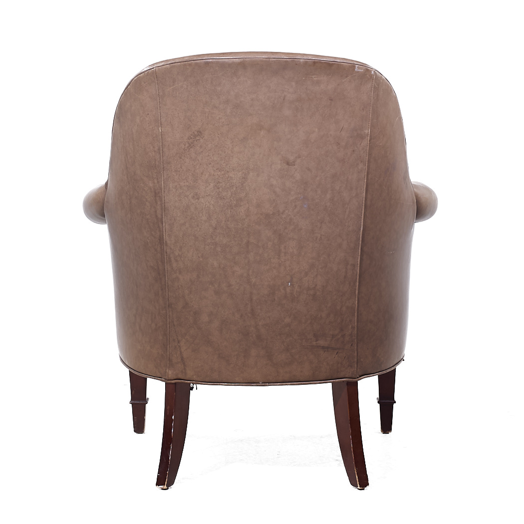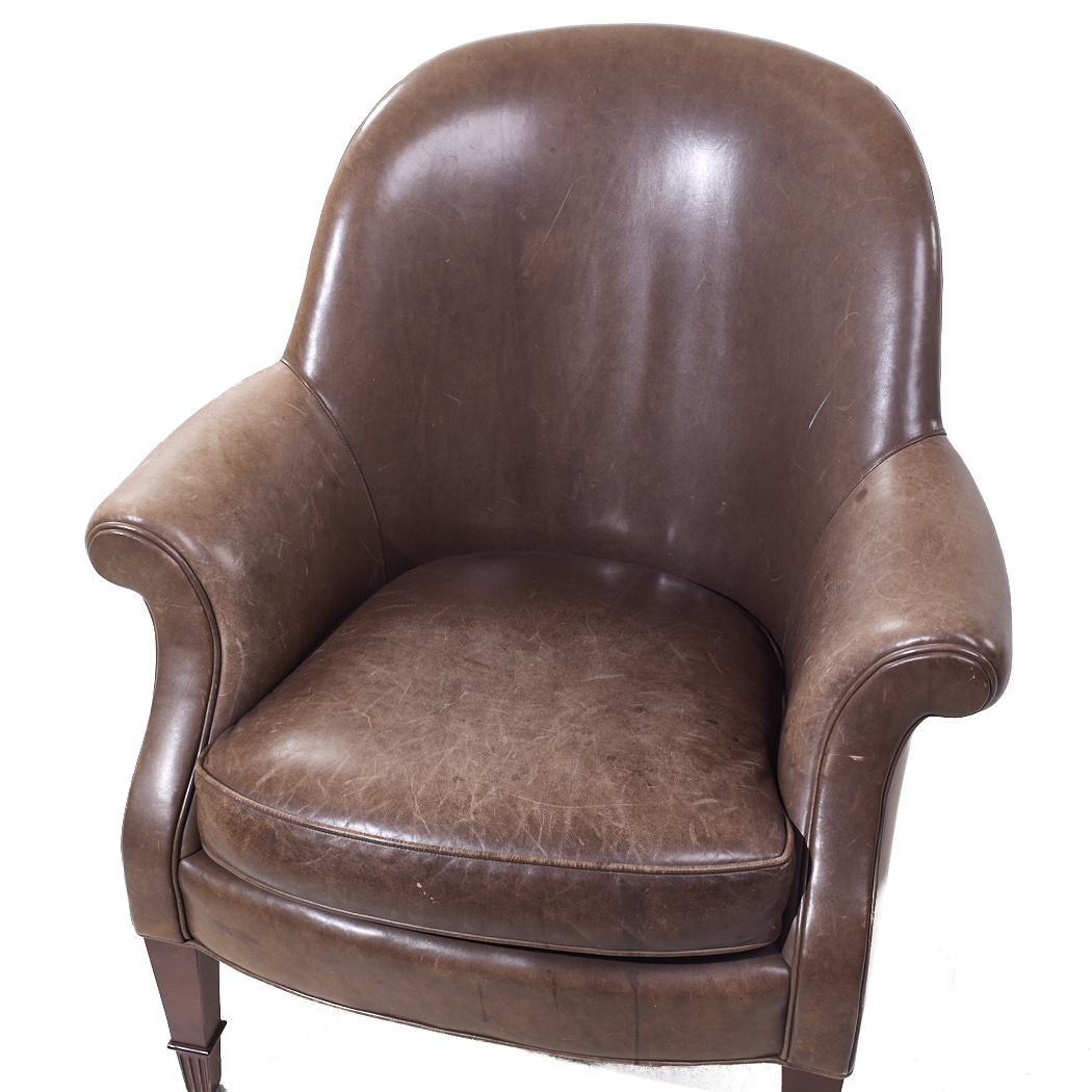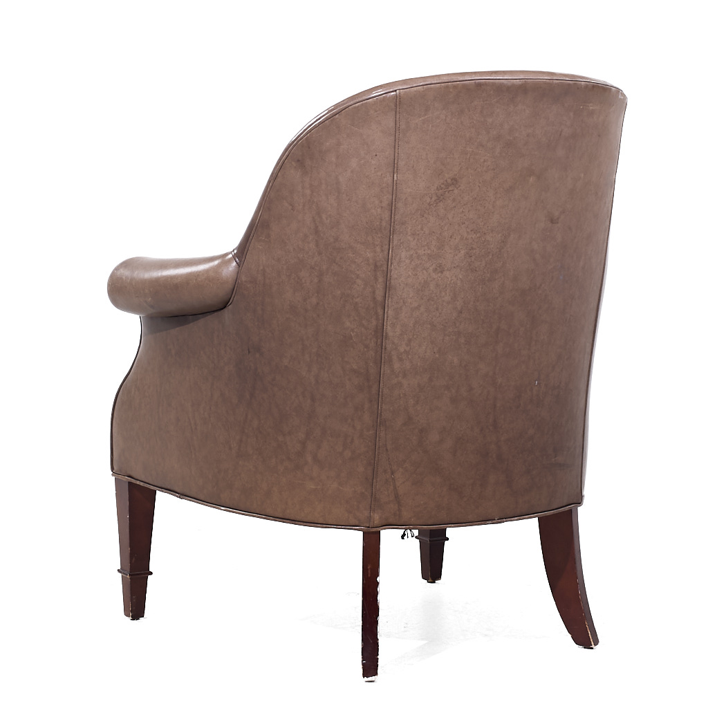 Baker Furniture Brown Leather Barrel Club Lounge Chairs