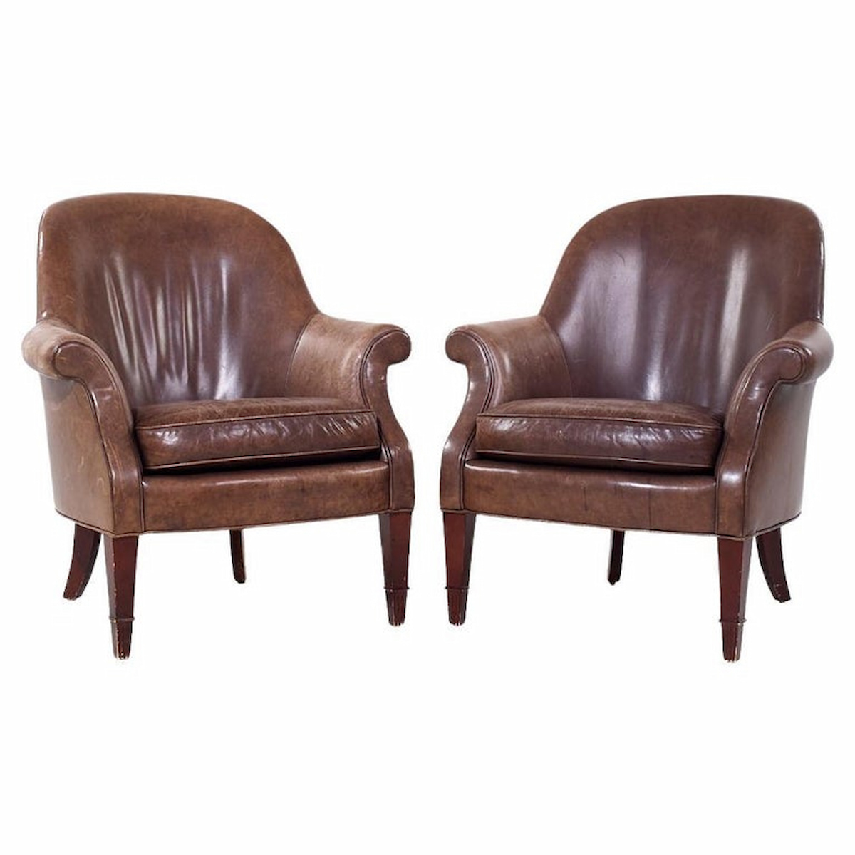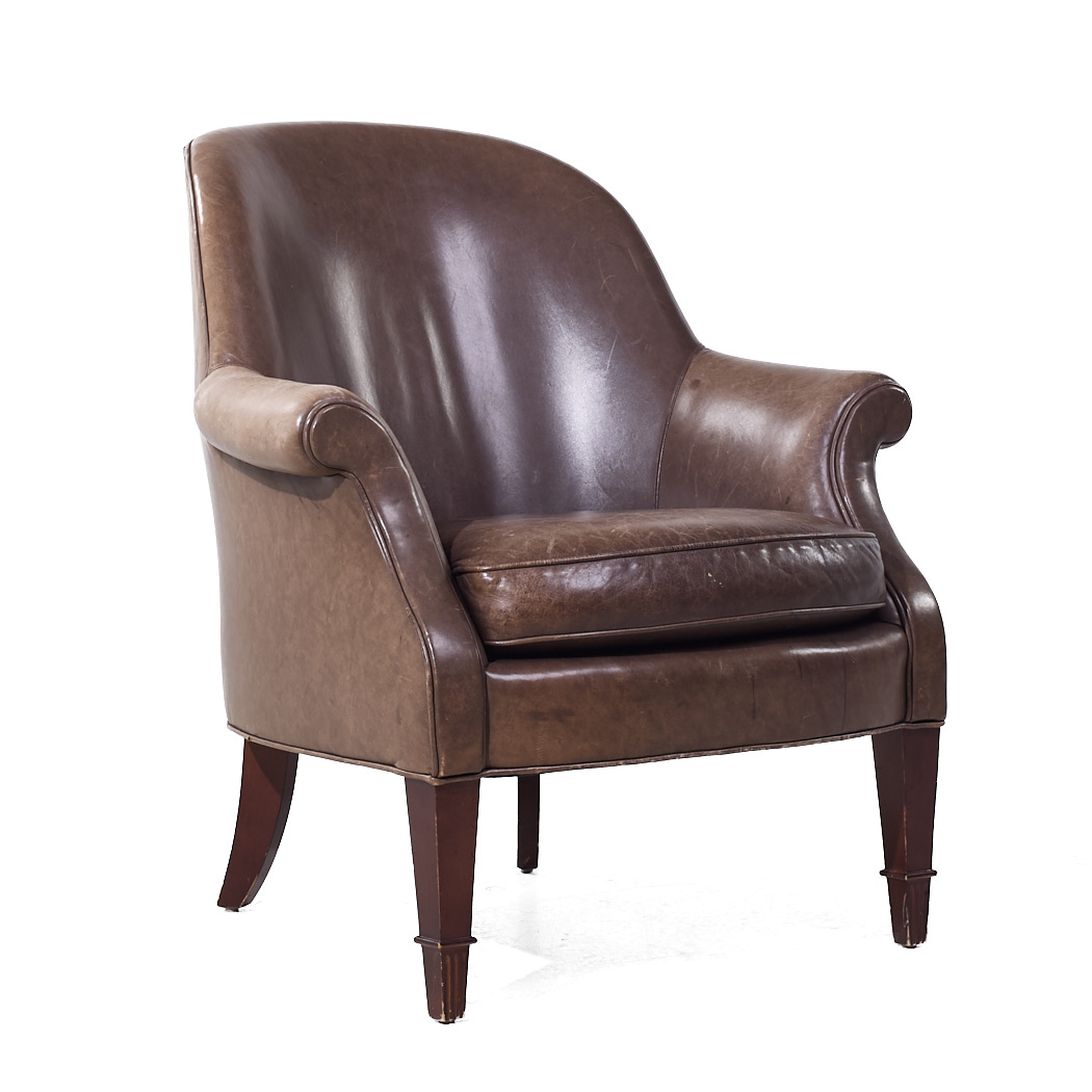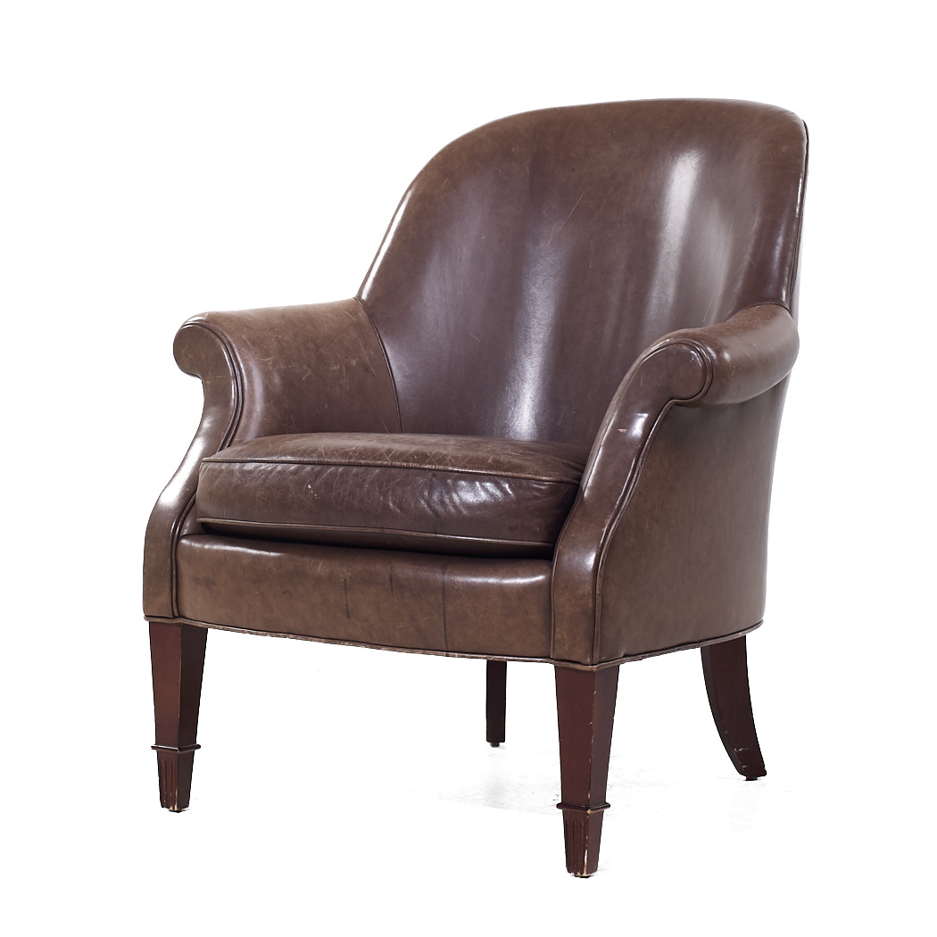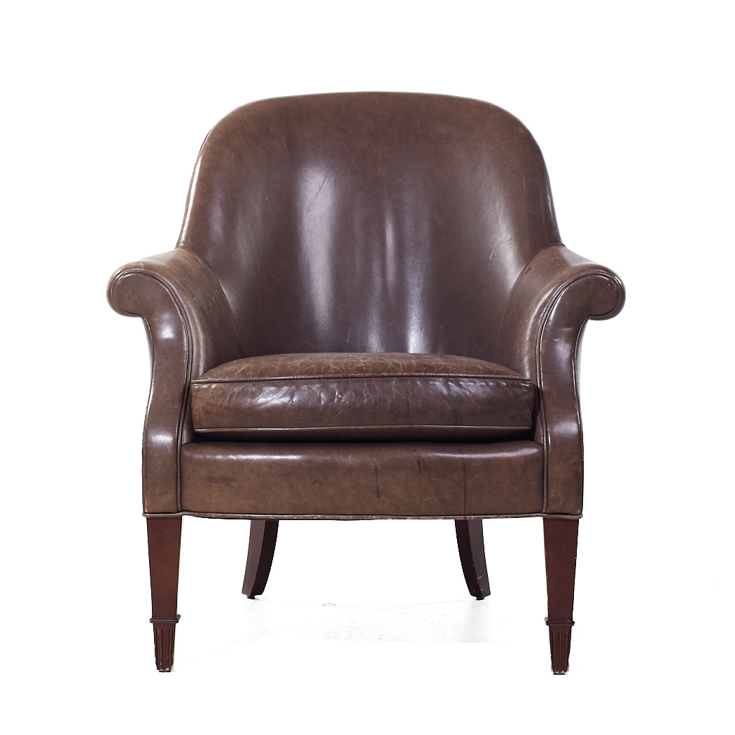 Ask A Question About the Baker Furniture Brown Leather Barrel Club Lounge Chairs