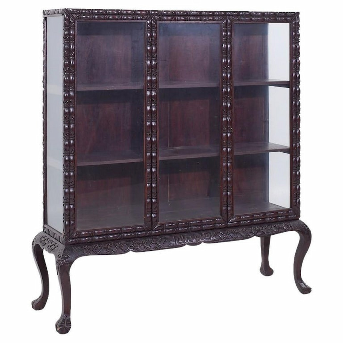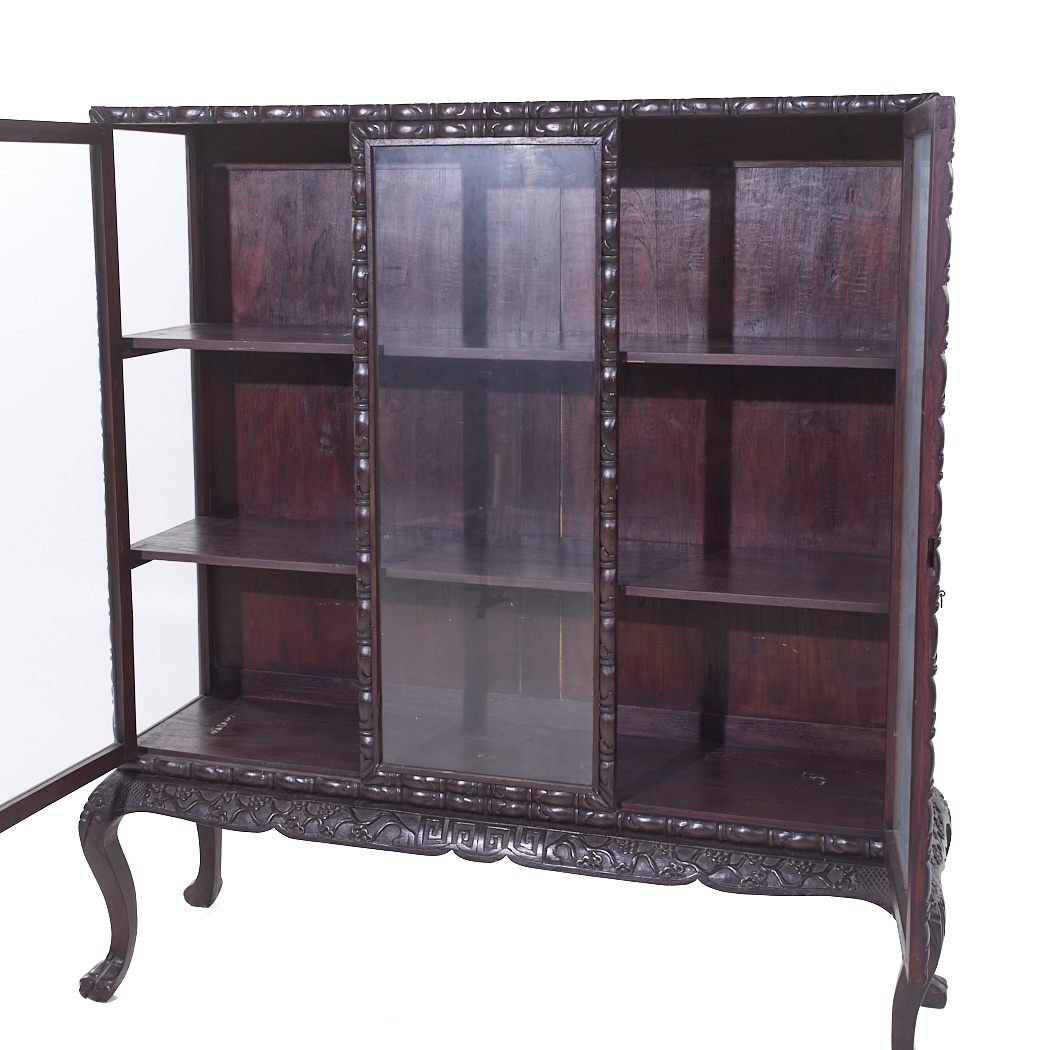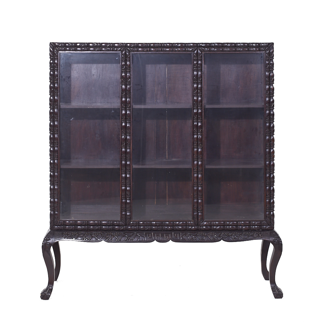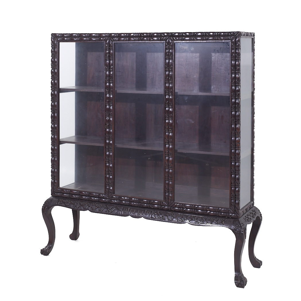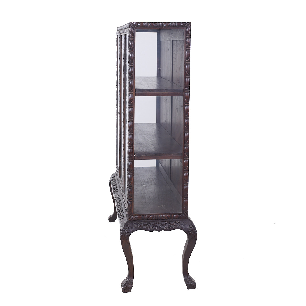 British Colonial Carved Claw Foot China Cabinet