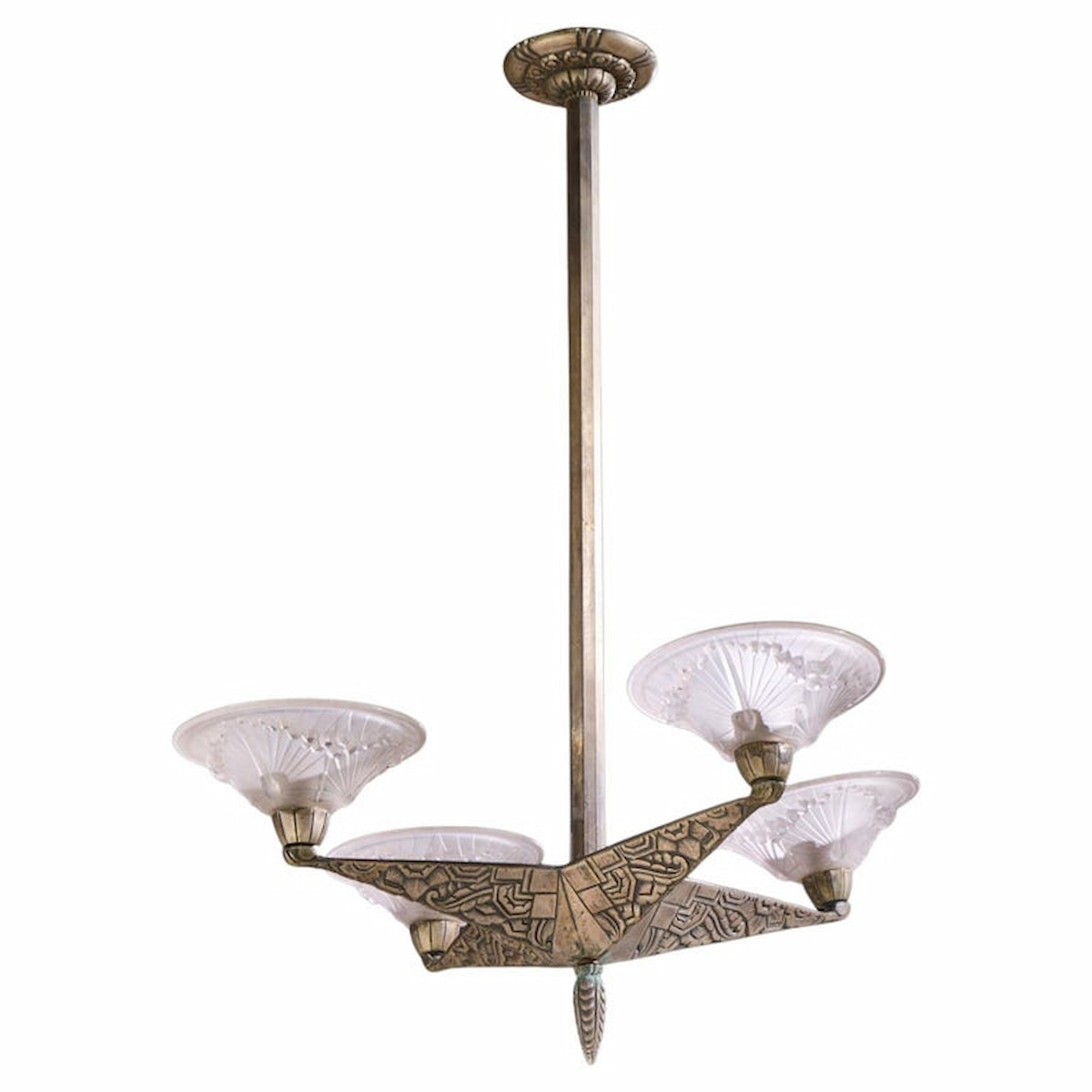 Charles Schneider French Art Deco Polished Nickel Chandelier