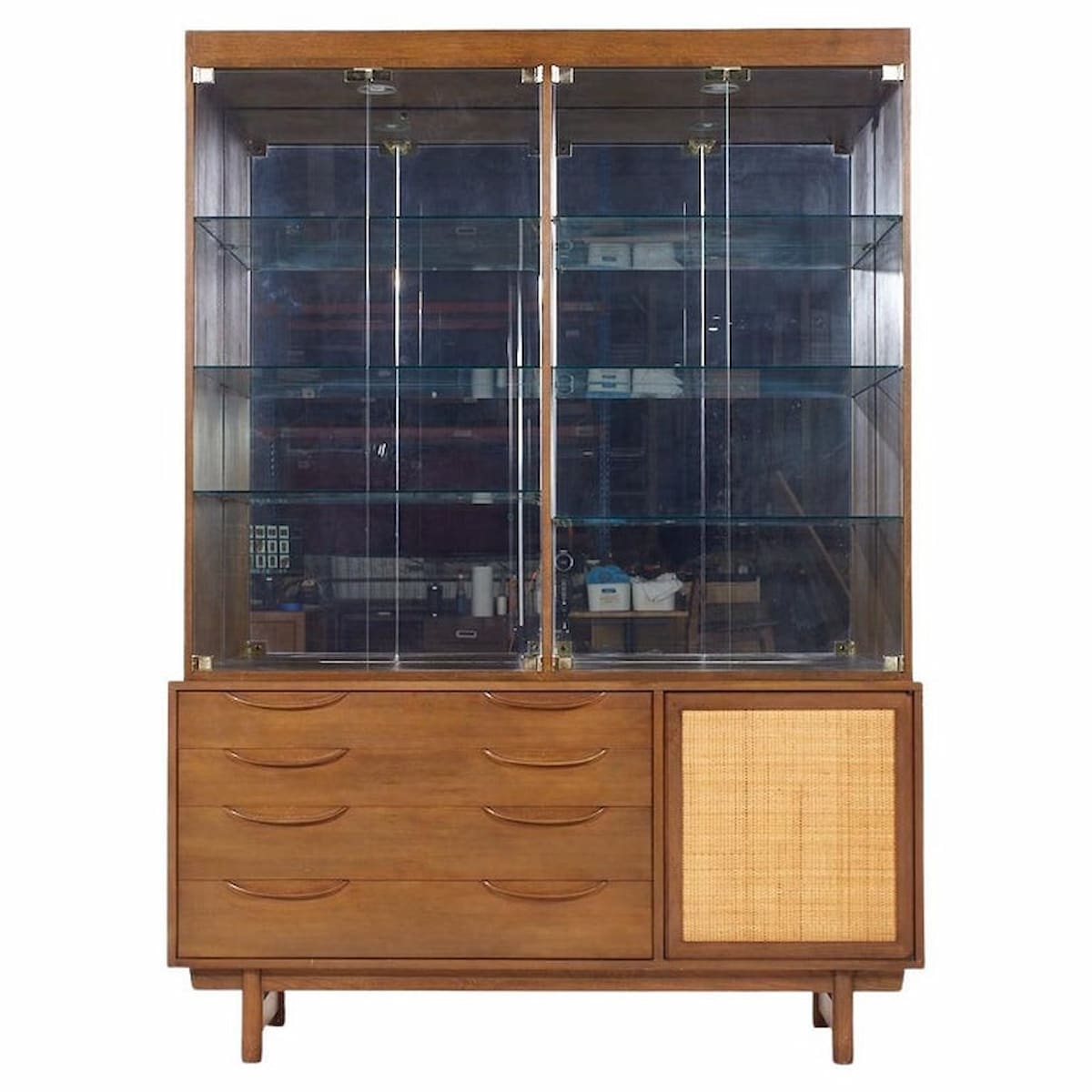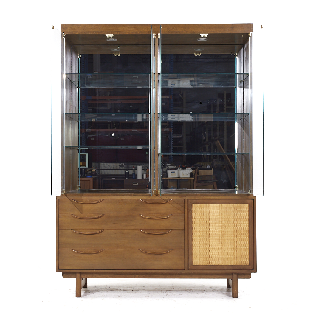 Ask A Question About the Lawrence Peabody for Nemschoff Walnut and Cane Credenza and Hutch