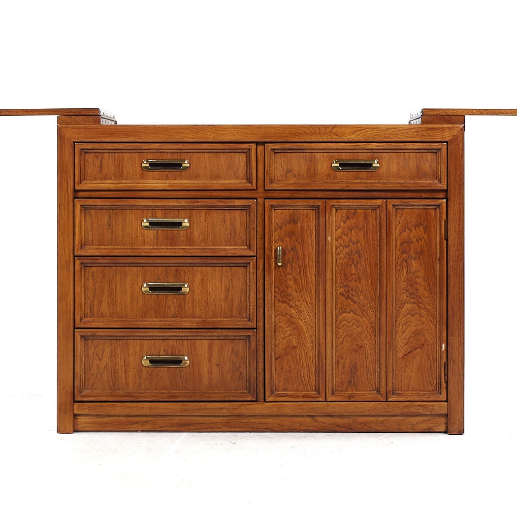 This bar serving cart measures: 42 wide x 19 deep x 32.75 high, when extended the width is 66.5 inches